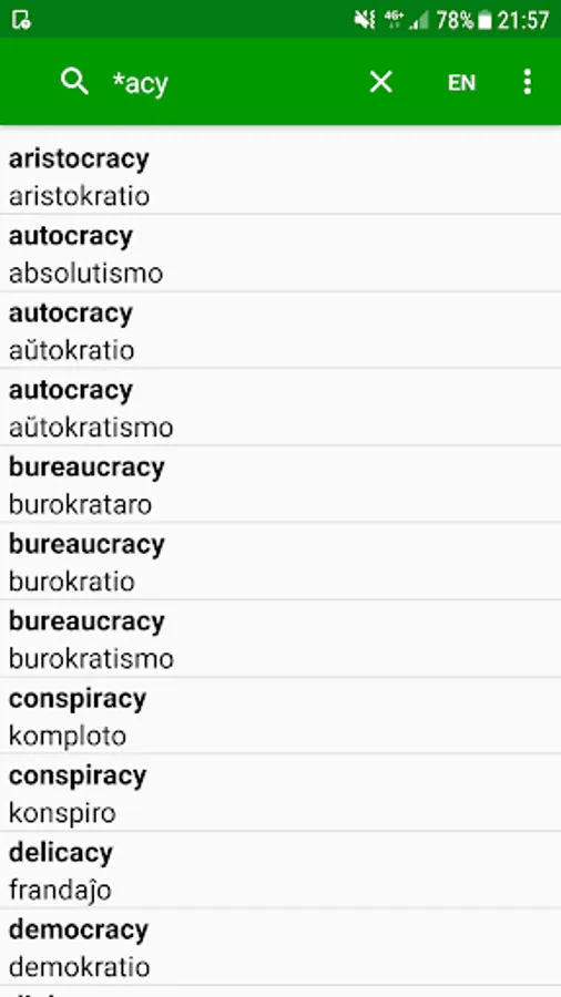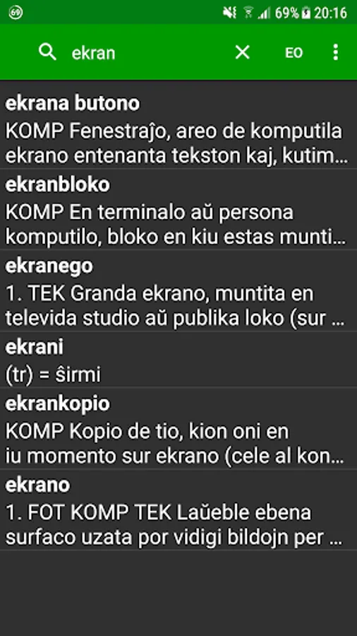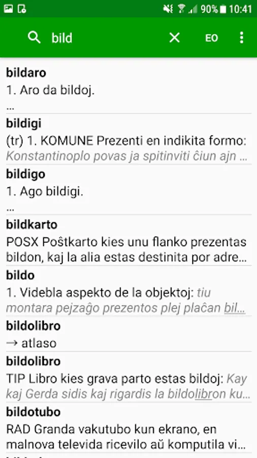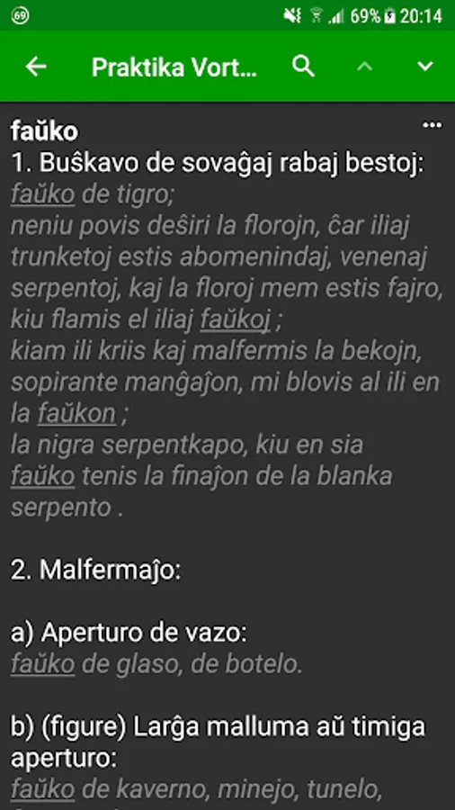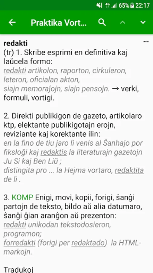 * Eblas alklaki vortojn en la difino por serĉi iliajn difinojn.
