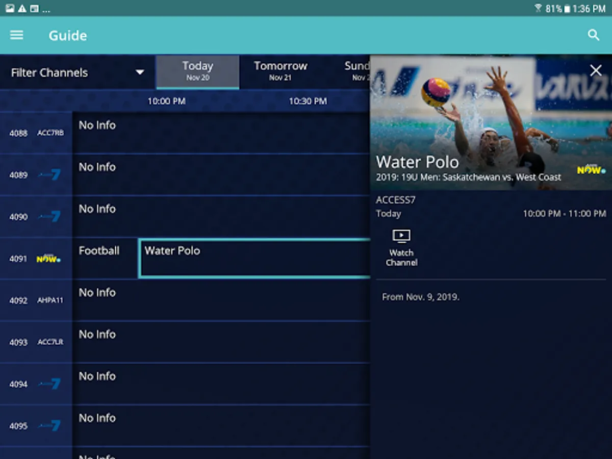 The AccessNow TV app allows you to watch live and recorded Video on Demand anywhere, anytime, any place. From sports to culture to entertainment the AccessNow TV app has it all. Take in a new series, get caught up on the episodes you missed. It’s your TV on your time.