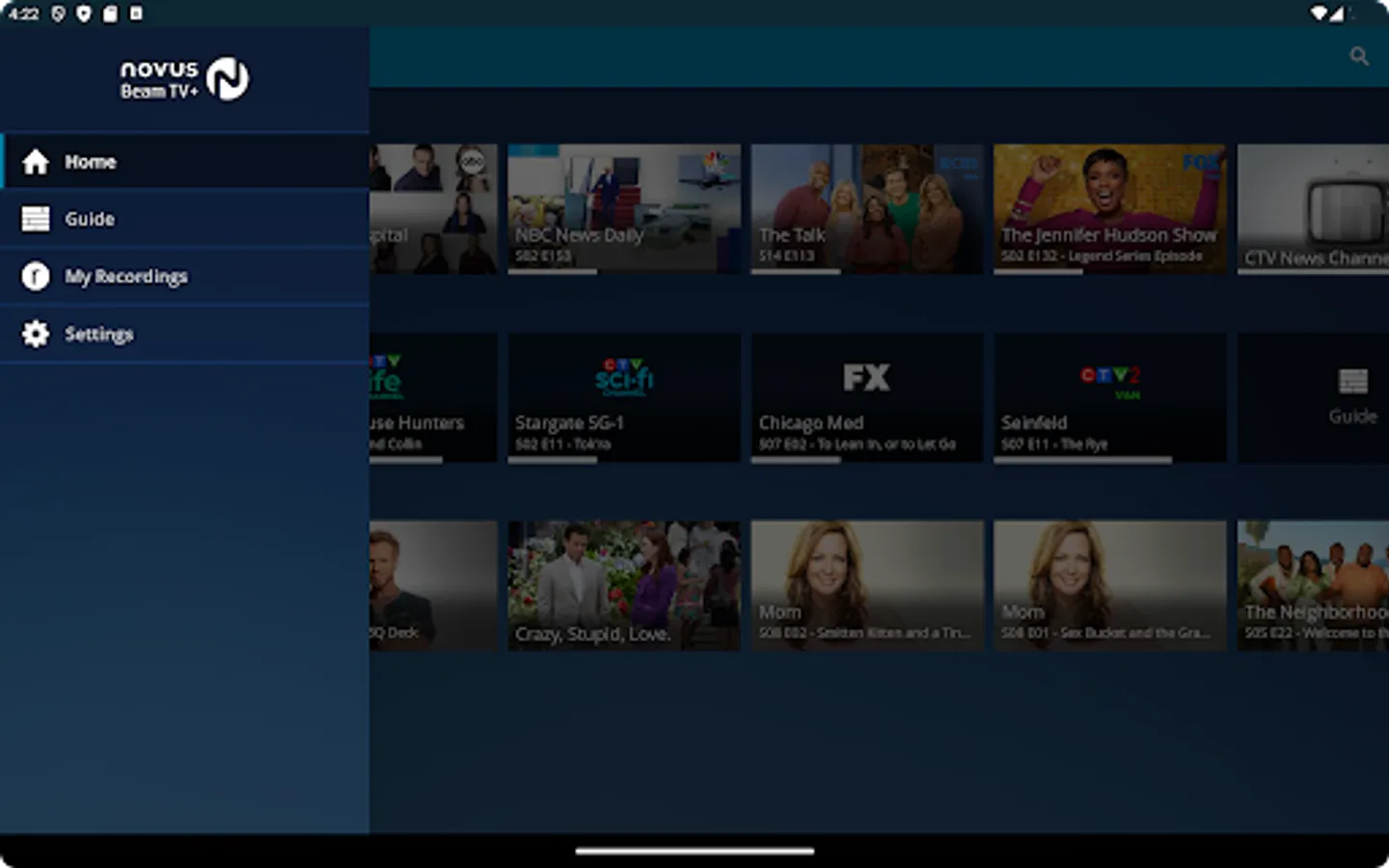 The Novus Beam TV+ app allows Beam TV+ subscribers to watch all their favourite content on the go on all your Android devices like smart phones, tablets. Watch live TV, set and watch recordings with Cloud PVR, restart shows already in progress and catch-up on shows by going back in the guide.