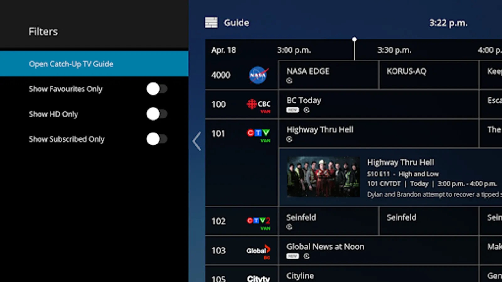• Some channels may not be available outside of home network