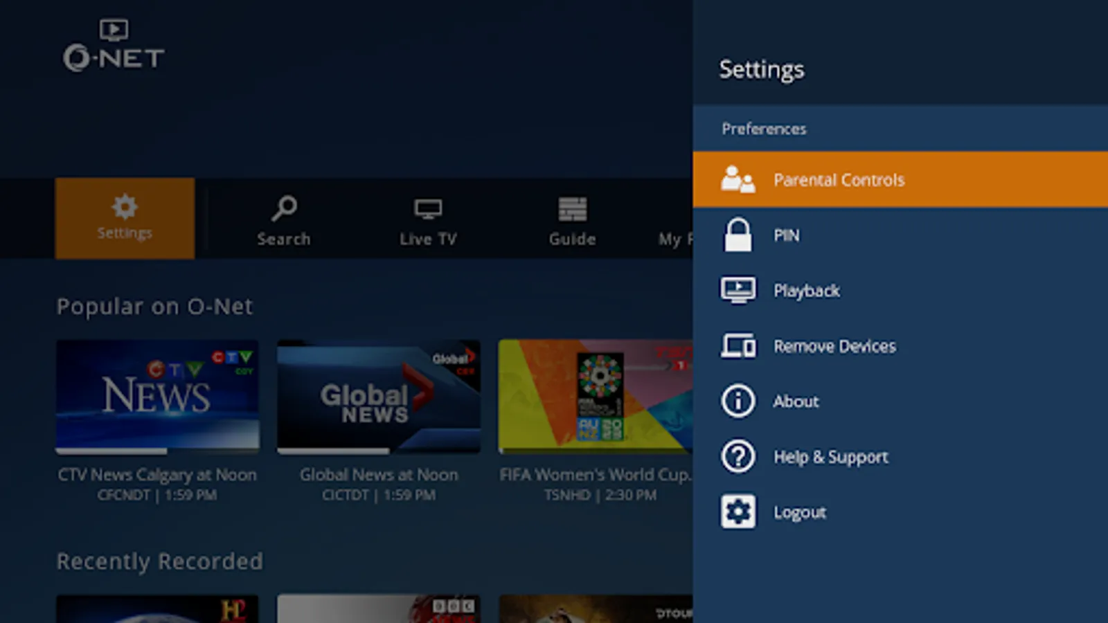 The O-Net TV app allows you to: