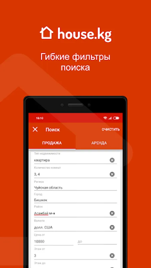 By installing the House.kg mobile application, you will become the owner of a number of convenient and irreplaceable functions: