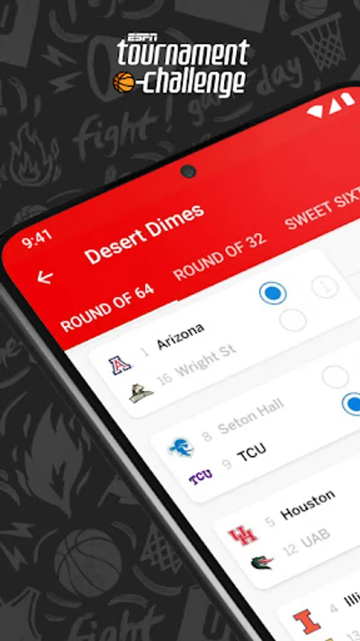- Finish your bracket in seconds by auto-filling with top seeds, a Smart Bracket powered by ESPN’s Basketball Power Index, or completely random selections. Unsure about a game or two? You can also import a bracket that you’ve already filled out on the app, make some tweaks and submit it again to increase your chances of winning!