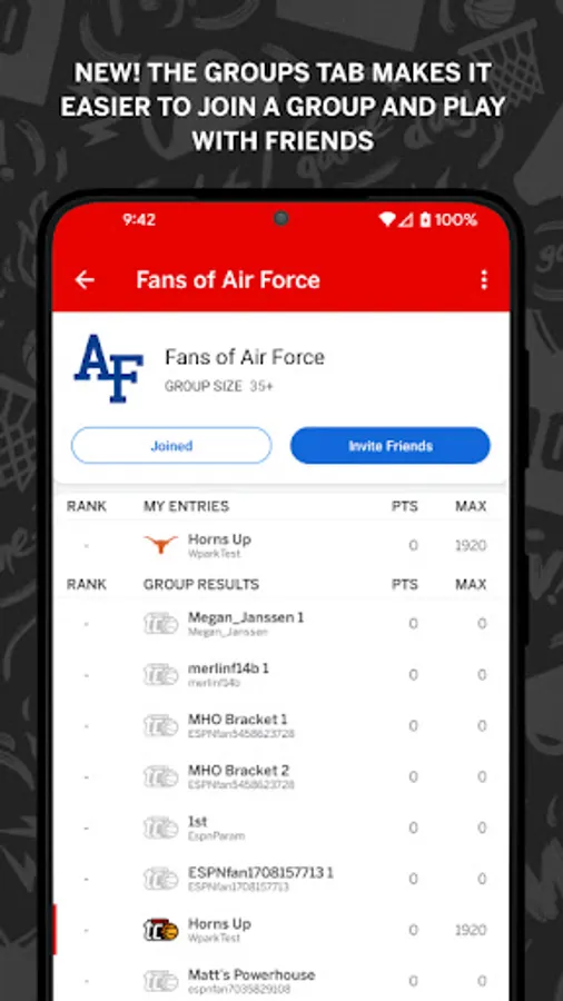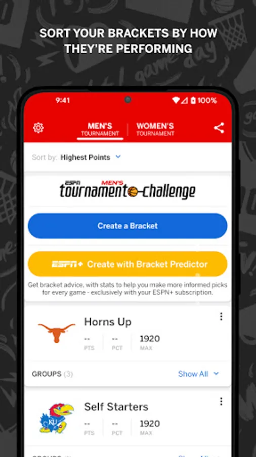 - Create up to 25 brackets and enter each bracket in up to 10 different groups to play against friends, celebrities, ESPN personalities, and fans across the nation.