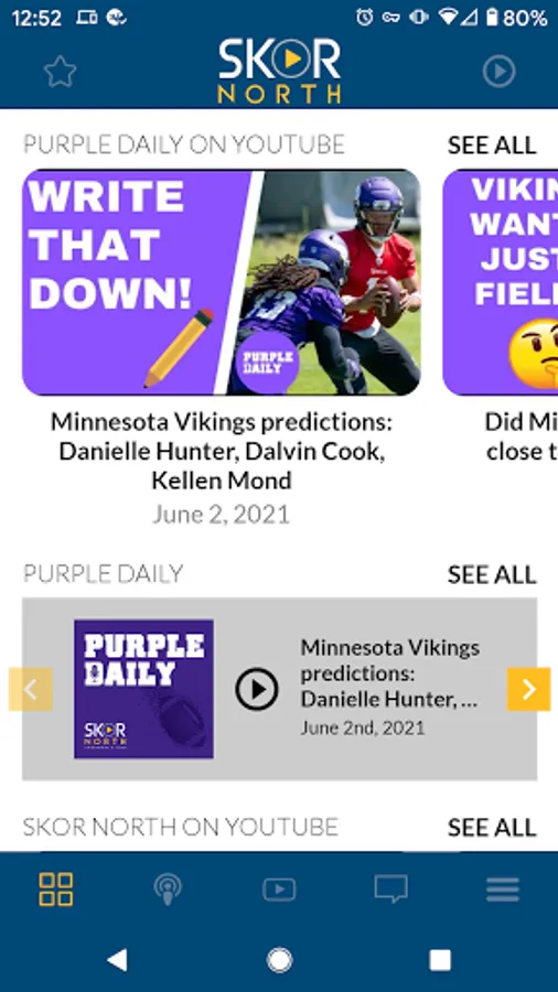 Get the latest from Purple Daily, Mackey & Judd, Vikings Ventline, Judd’s Hockey Show and the entire catalog of offerings from SKOR North. Watch the latest videos, listen to the latest podcasts, read the latest articles and more.