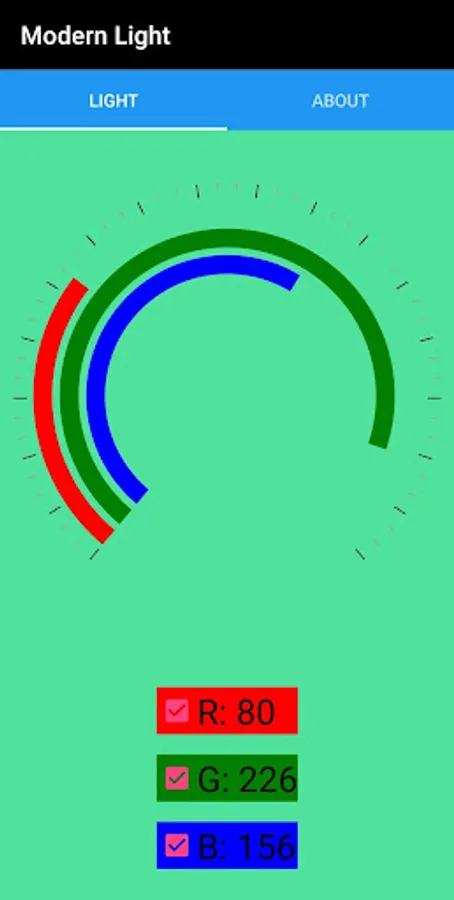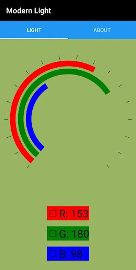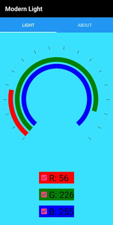 - RGB colour values and combined background colour updated in real time as the phone is rotated or moved.
