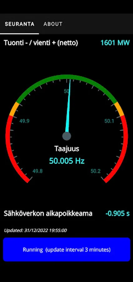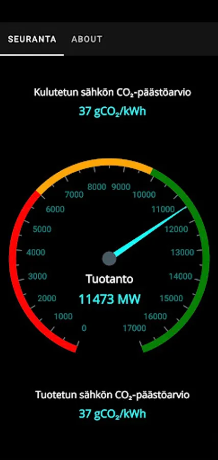 The application uses Fingrid open data and the data is automatically updated every 3 minutes.