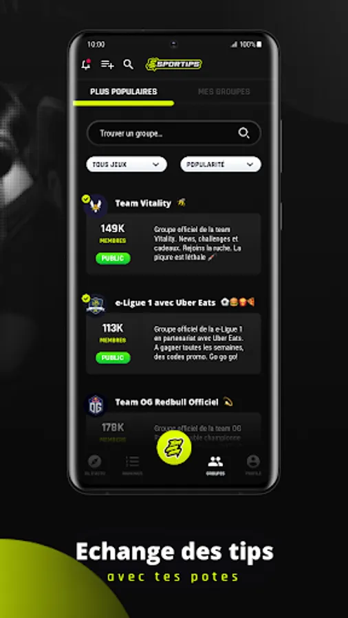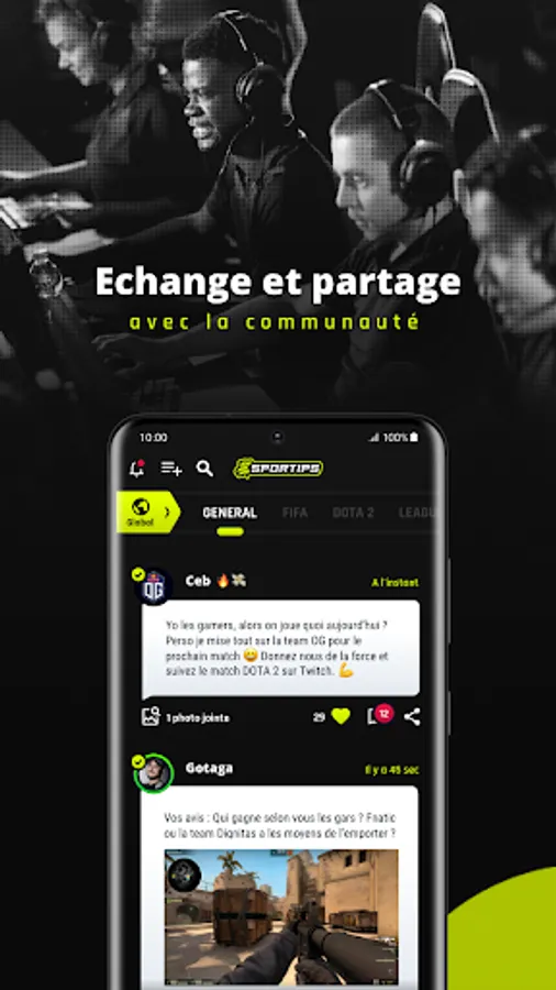 You will be able to follow the news on the games, the calendars of the main competitions, the information on the big teams and the pro esports players, follow the forecasts of experts, publish your own predictions, watch the odds of the big competitions, read the match results, take part in challenges to measure yourself against others and more.