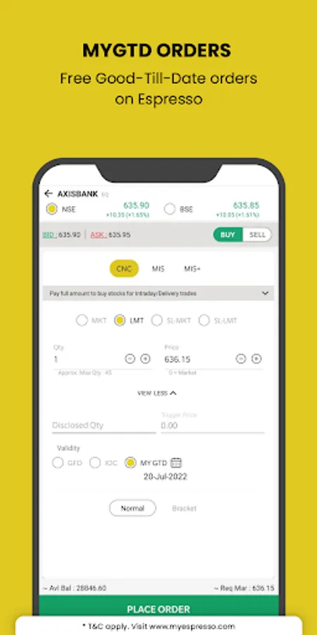 • A variety of order placements in one place – normal order, MIS, MIS+, Bracket Orders (BO)