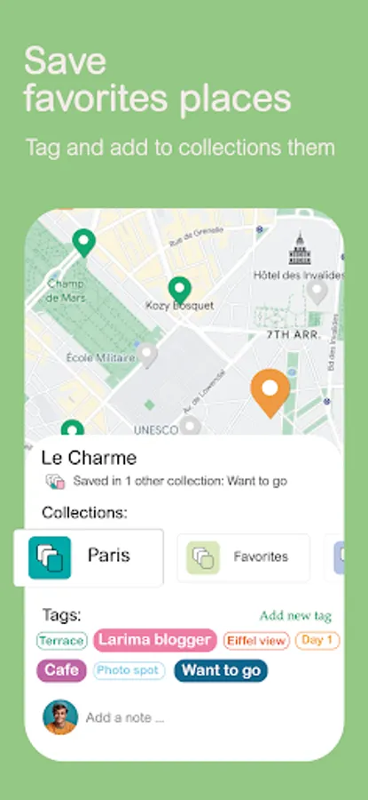 With MapHub, you can effortlessly create a digital map that reflects your unique experiences. Save the places you love or want to visit, whether it's a picturesque cafe, or a breathtaking landmark. Organize them using tags that resonate with you, making it easy to find and navigate your personal map.