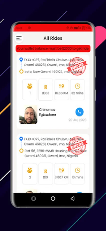Esquare Cab Driver can check all the Normal Pending Trips / Running Trips / Completed Trips list and details
