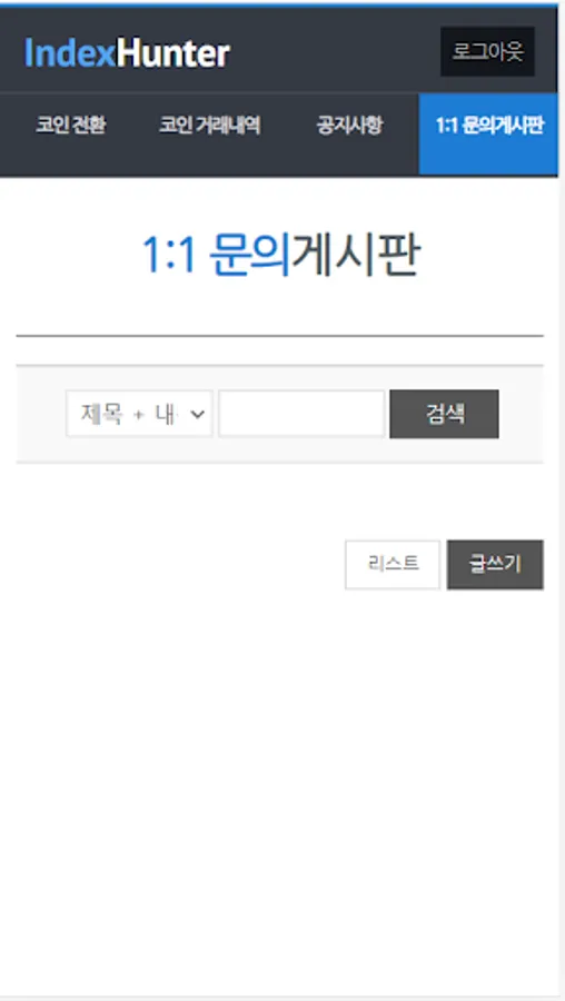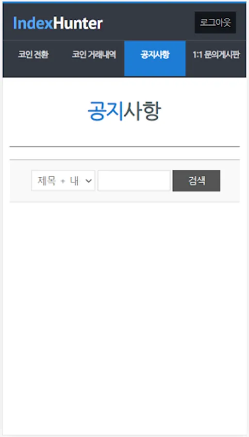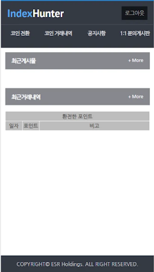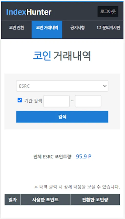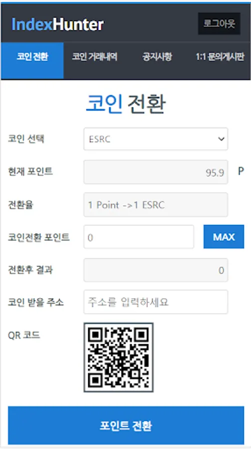 인덱스헌터 게임에서 수집한 내역을 인덱스 거래소로 전환해 주는 어플입니다