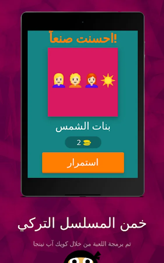Guess the Turkish series through emoji is an entertaining, interesting and easy game, and it has a large variety of stages, and aids to help you solve puzzles, if you think you know all the Turkish series, try to solve the puzzles 😉