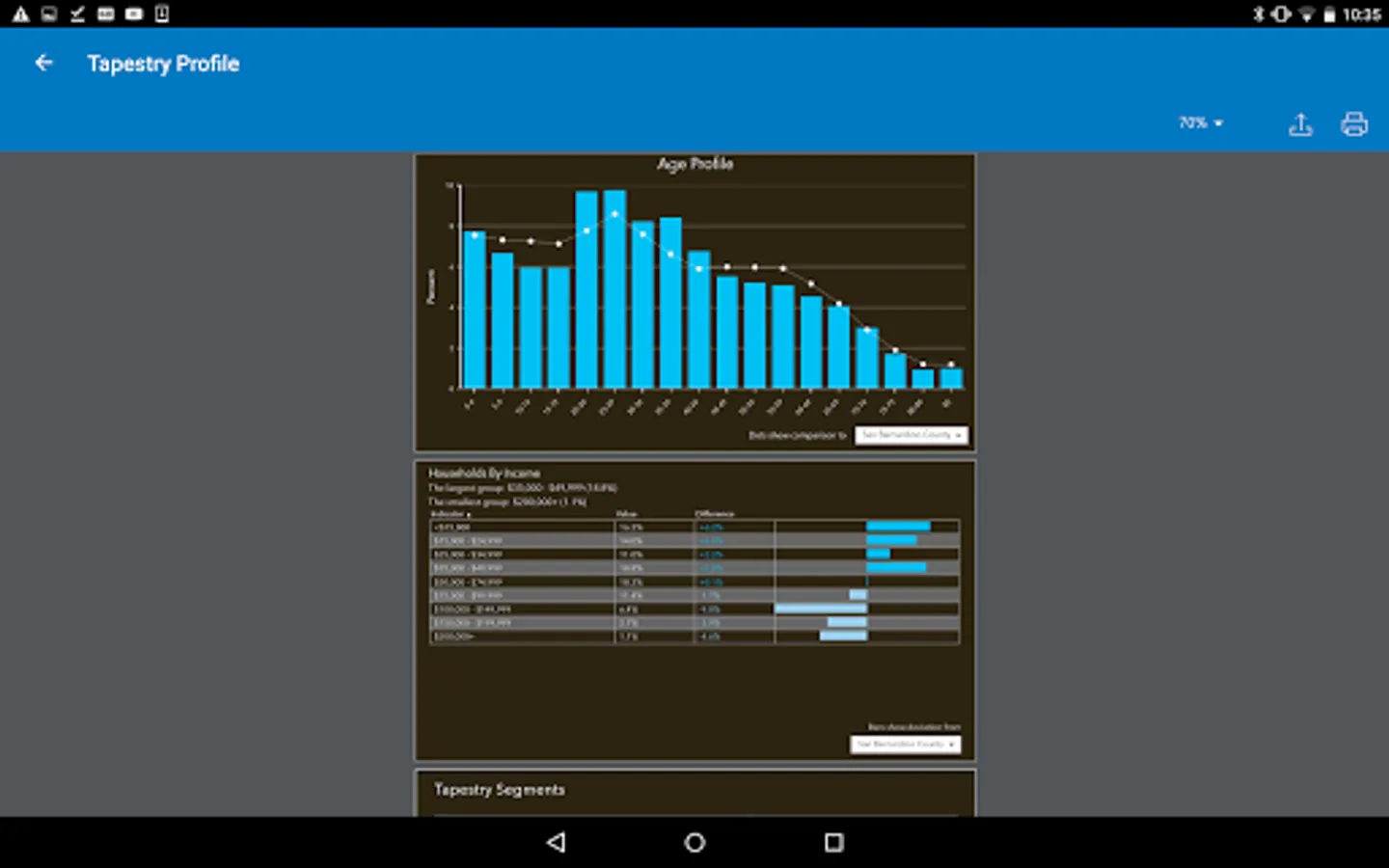 ArcGIS Business Analyst is available for web, desktop, and enterprise as well to help you combine demographic, lifestyle, and spending data with map-based analytics to create accurate reports and dynamic presentations. Then instantly share your market research with decision makers.