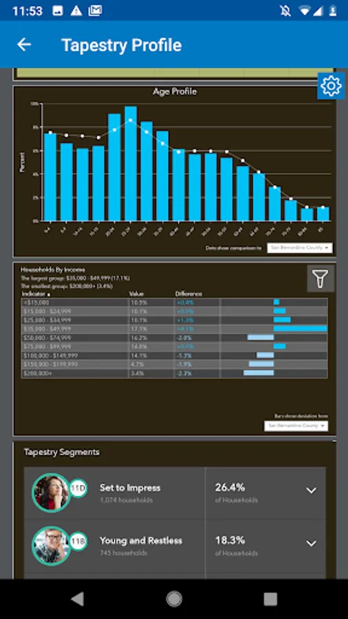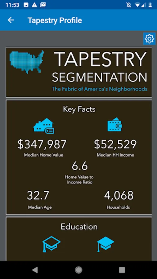 * Get a quick demographic and market snapshot for a location to understand the types of people live in that area.