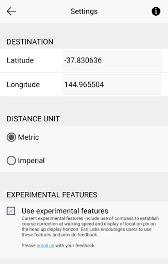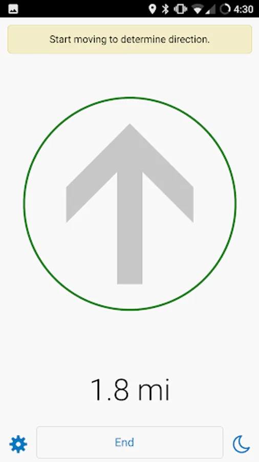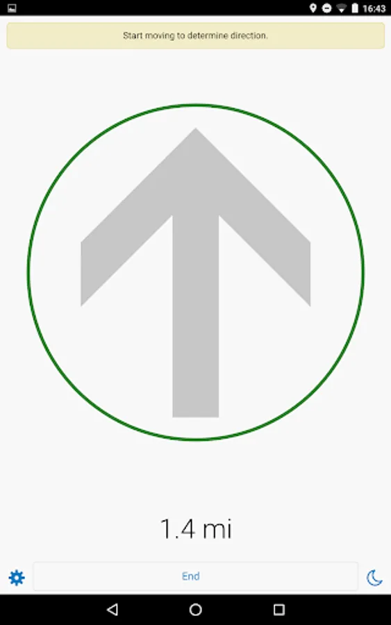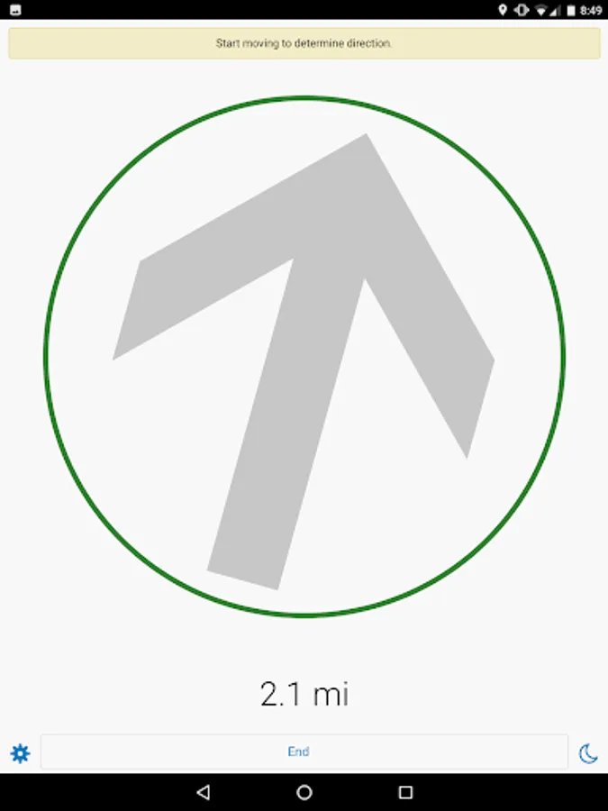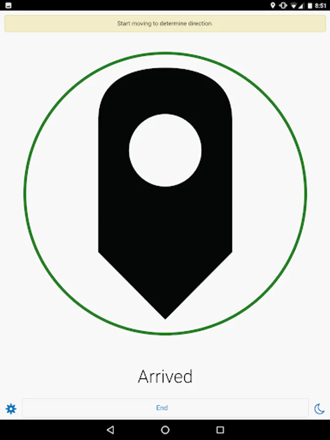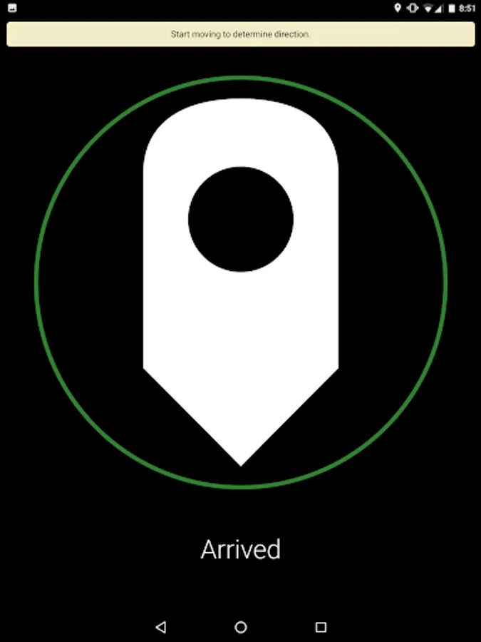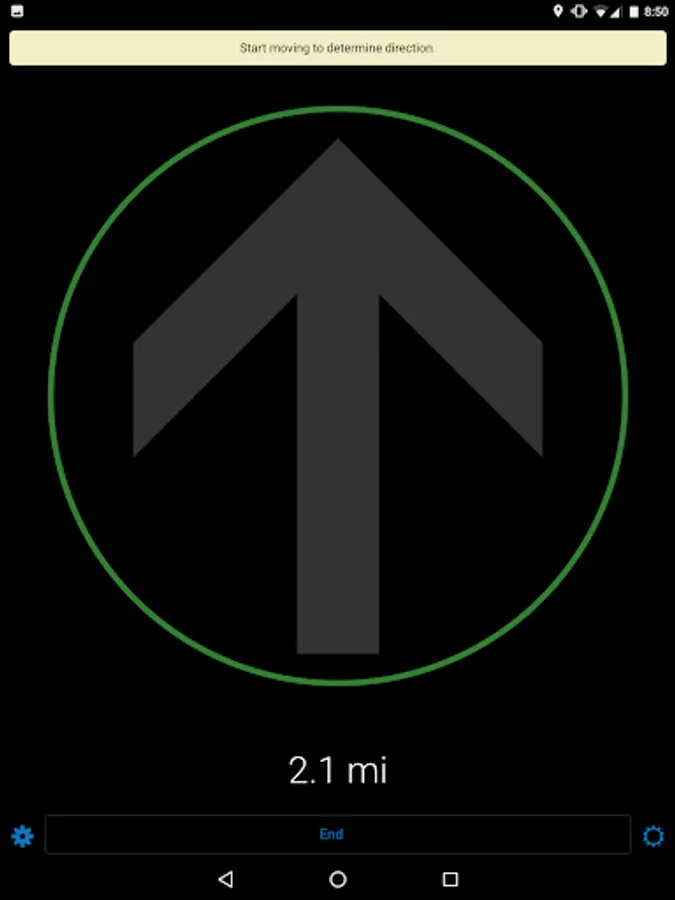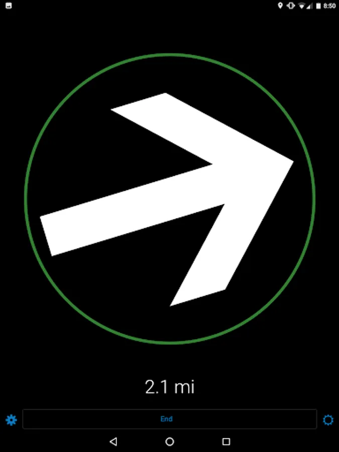 Note: Do not attempt to use this directional information unless you are at a complete stop. Travel safely and use common sense when using Trek2There. Trek2There is not to be used for terrain avoidance as direction and distance information does not consider traveling around physical barriers such as cliffs, water bodies, roadways, moving vehicles, buildings, etc. Do not follow any travel suggestions that appear to be hazardous, unsafe, or illegal. Trek2There is provided on an “As-Is” basis. You assume all risk of using the Trek2There app.