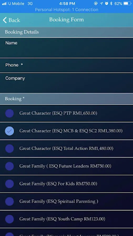 ESQ 165 MY application consists of information of ESQ by itself, Founder of ESQ, Training that ESQ 165 provided. Also, ESQ 165 MY application let user to book their training easier and fast. This application includes feedback form to let user show their opinions and rate on event running. Besides, ESQ 165 MY have facebook fan page linked into the app so that user can scroll the page without using external app. This makes ESQ 165 MY is one application , but containing more than 10 features in it.