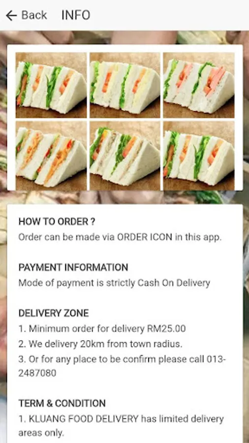 KLUANG FOOD DELIVERY menyediakan makanan untuk anda sehingga ke pintu rumah atau pejabat. Melalui dapur pusat kami di bandar Kluang, KLUANG FOOD DELIVERY menyediakan makanan yang enak dan menyelerakan. Makanan akan disediakan dalam masa 2 jam dari tempahan diterima. Permudahkan urusan memasak anda, biar kami uruskan. Tempahan boleh dibuat bermula 10pagi hingga 8malam, penghantaran akan dibuat bermula pukul 11pagi hingga 9malam. Bagi tempahan awal, anda boleh hubungi kami melalui panggilan telefon atau wasap ke admin app ini.
