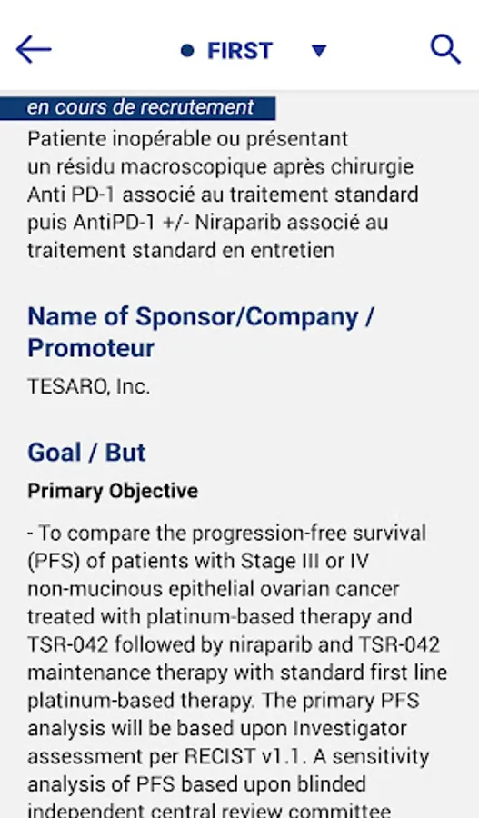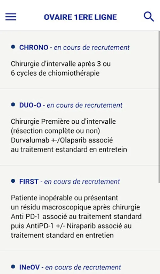 The information contained in the ARCAGY-GINECO application is intended for healthcare professionals involved in clinical research in gynecological oncology. The conditions of use of the ARCAGY-GINECO application are governed by French law, as well as the substantive and formal rules. All the information contained in the ARCAGY-GINECO application has been verified, validated and documented. Documentary sources, if any, are available upon request. Information contained in the application may not be approved by health authorities and should not be put into practice. For any information, contact ARCAGY