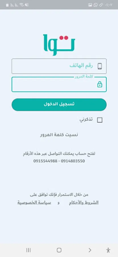 The Twa service is one of the services provided by Al-Hurriya Company for electronic payment and aims to provide our valued customers with many prepaid cards and digital products. The service is based on providing vouchers for telecommunications and Internet companies operating in Libya, such as Libyana, Al Madar, and Libya Telecom and Technology Company, in addition to a number of other services such as Software licenses, payment of hosting bills for the Libyan Anabkot Company, and many other services that will be added later