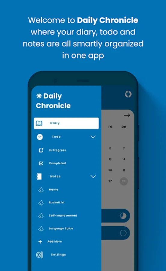 Welcome to Daily Chronicle! Have you ever thought that writing an article daily for your diary is daunting and overrated? Or that scheduling todo items is too unrealistic? If so, this app is for you.