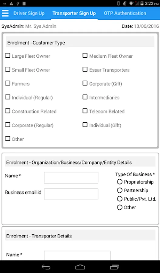 Essar Fleet Plus program is the first digital fleet program. The program offers simple, secure and convenient solution to transporters to manage their fleet and fuel expenses. This app is used by Essar Oil Retail Outlets and Essar Users to carry out enrolments of fleet customers in the fleet program . Transporters and Drivers are both enrolled through this app after authenticating their mobile numbers.