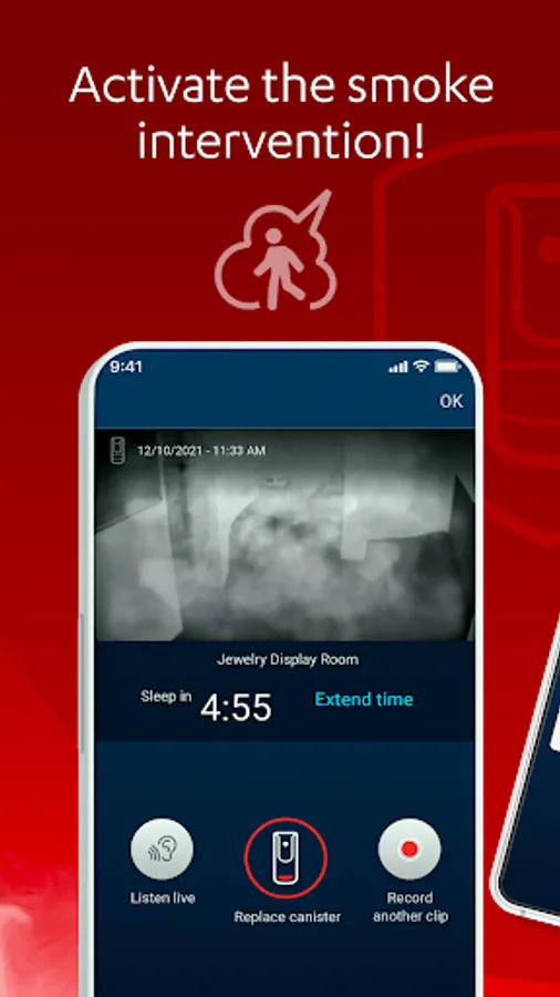 The integrated, easy-to-install system includes a passive infrared (PIR) motion detector, a high-definition video camera with recording capabilities for video verification, two-way voice communication, and a proprietary smoke generator that fills a room within seconds with a veil of harmless yet disorienting smoke to force intruders out of premises.