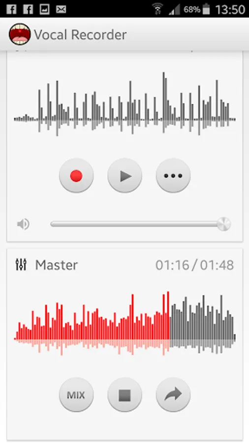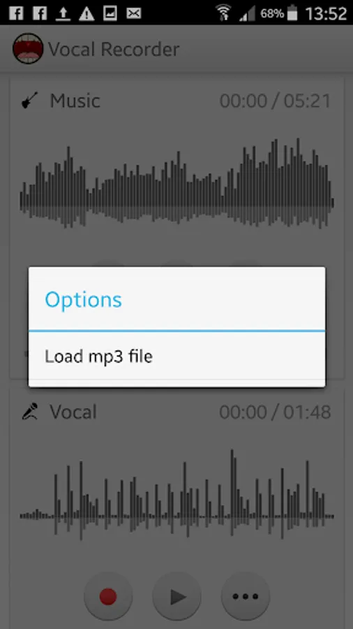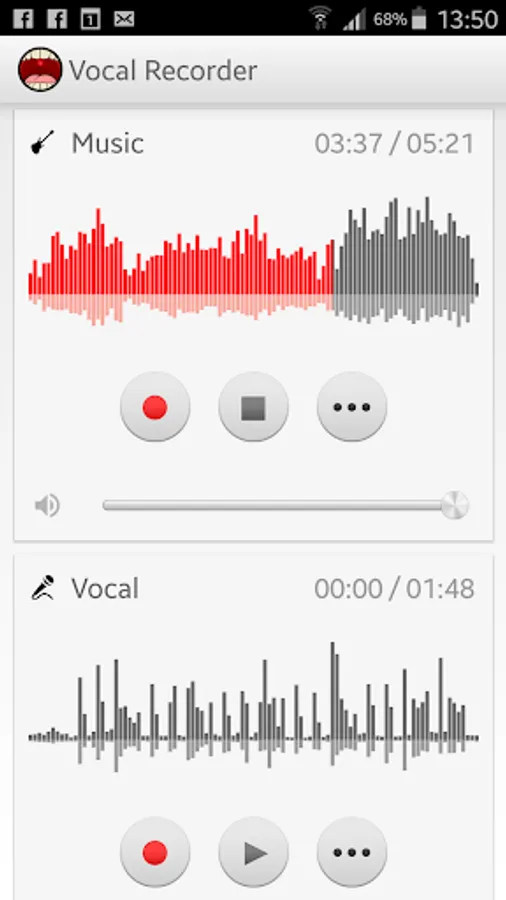 Vocal Recorder is a simple but powerful two track audio recorder that allows to record high quality songs with just your phone. It's ideal for musicians who want to record instrumental and vocal tracks separately to get high quality voice and music recording. It's simple, fast and free.