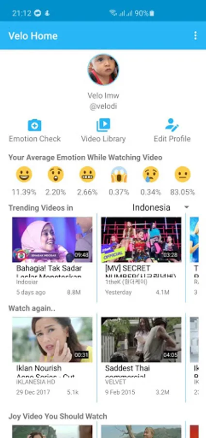 Every time a user watches a video, the user's facial expression will be analyzed using the smartphone's front camera to get the user's expression while watching the video.