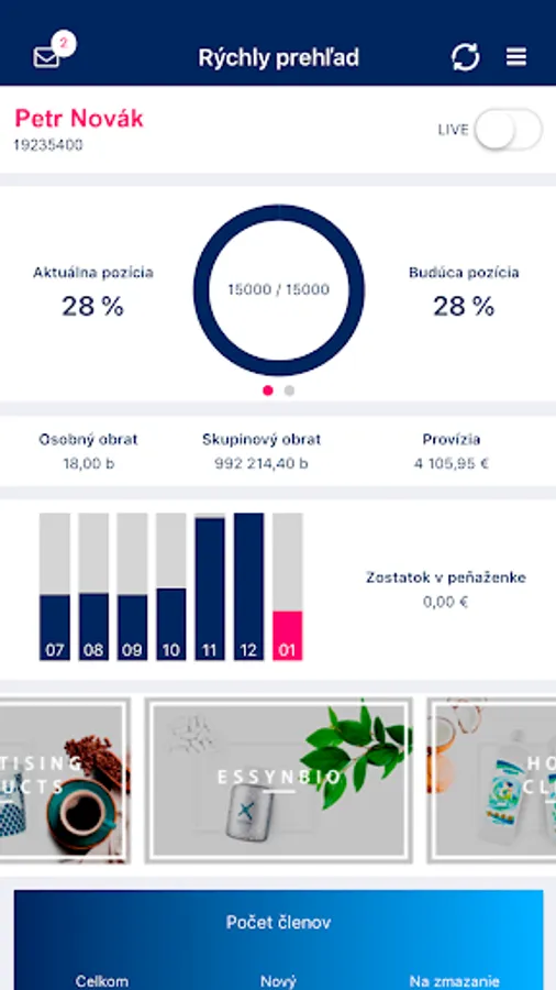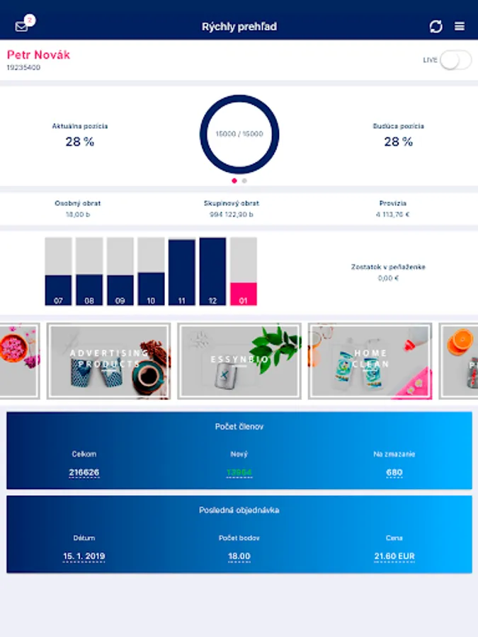 myESSENS mobile application is the easiest business tool for modern ESSENS Club member. It allows you to keep in touch with your own account, monitor your incomes as well as the movements in your own network. The practical e-shop has useful information about individual products and product lines and of course, offers immediate order processing at any time and anywhere.