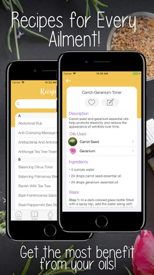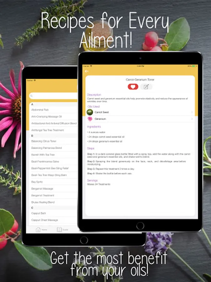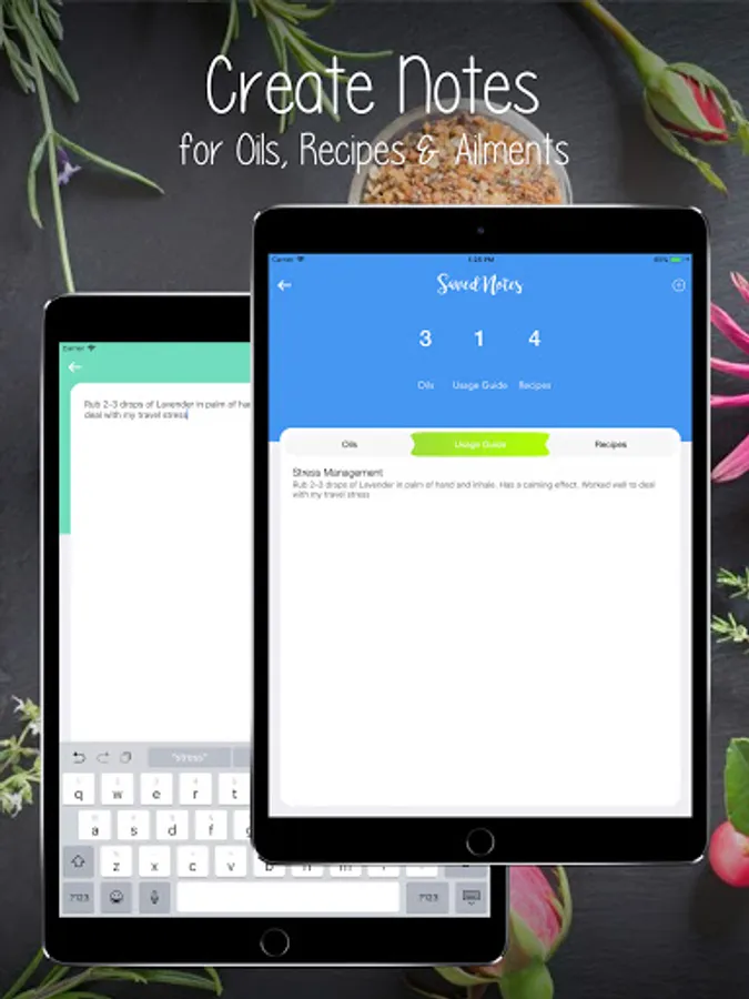 • Create and save notes for any Essential Oil, Ailment or Recipe