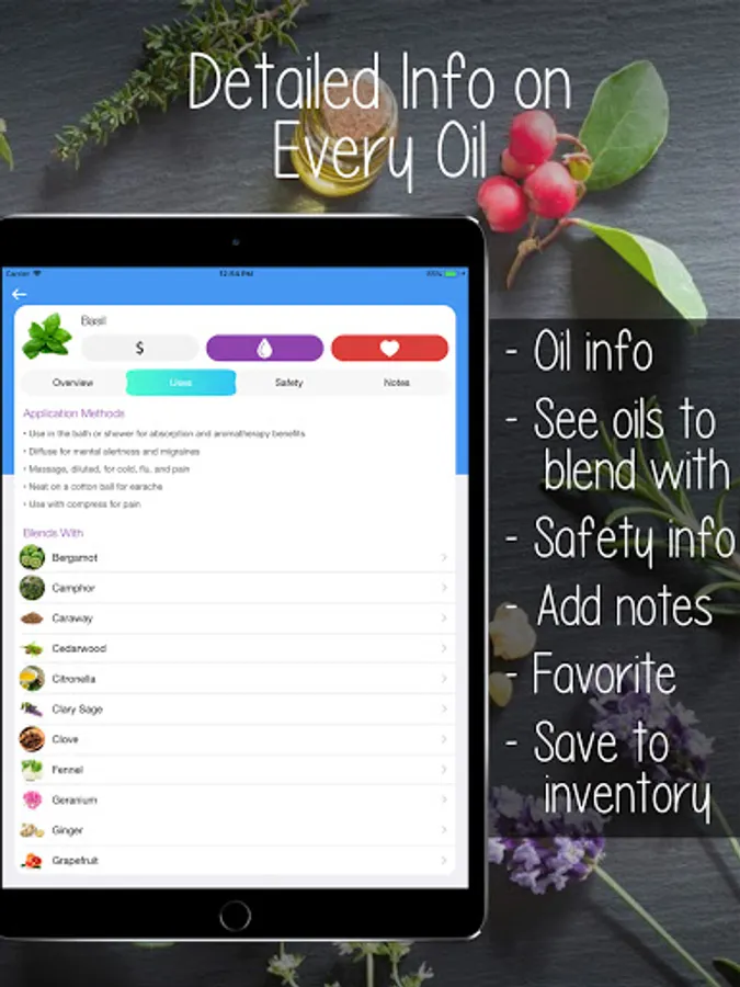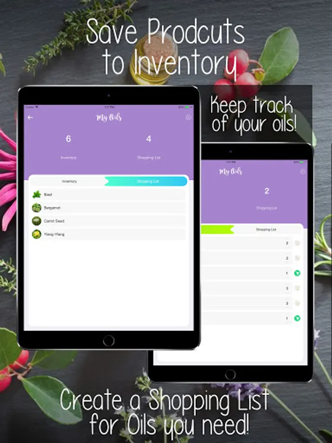 • Our unique Inventory feature allows you to track the oils you have, quantities remaining, and create a shopping list for oils you need to order