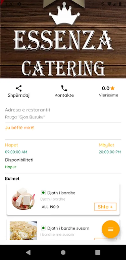 Essenza Katering vjen për ju si gjithmone me shumëllojshmëri gatimesh.