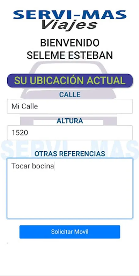 SERVICE OFFERED BY SERVI-MAS, TO REQUEST THE SHIPMENT OF MOBILE (REMISES).