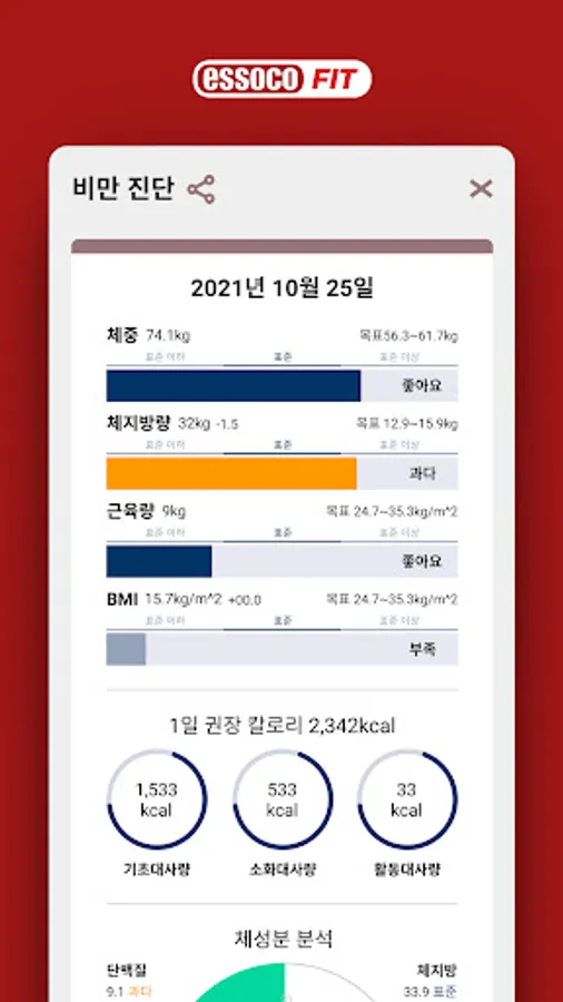 ■ Body composition data – Check the body composition information measured by essoco Fit.