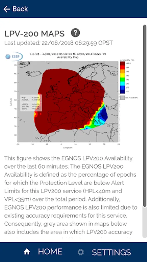 The EGNOS application provides all information an EGNOS user could need for the different EGNOS Services (OS, SoL, EDAS), including performance data (real-time, historical and forecast performance), EGNOS official documentation (Service Definition Documents, Service Notices, public reports…) and different support material and guidelines for different application domains.
