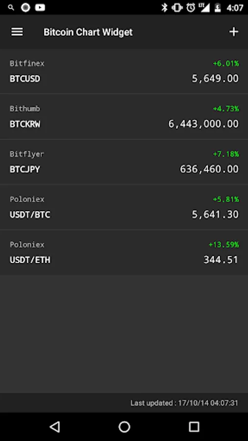 Bitcoin Chart Widget can display chart of cryptocurrency (Bitcoin, Ethereum, ...) on your homescreen.
