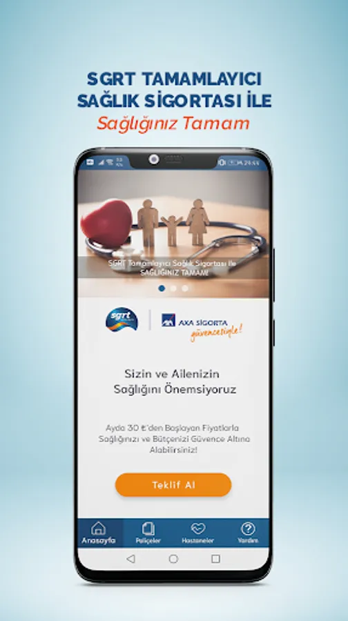 SGRT Complementary Health Insurance is a mobile application developed by SGRT Insurance with the assurance of Axa Insurance, where users can easily access all kinds of information about Complementary Health Insurance (TSS) on their mobile phones and find and buy the most suitable complementary health policy for themselves as a family or individual.