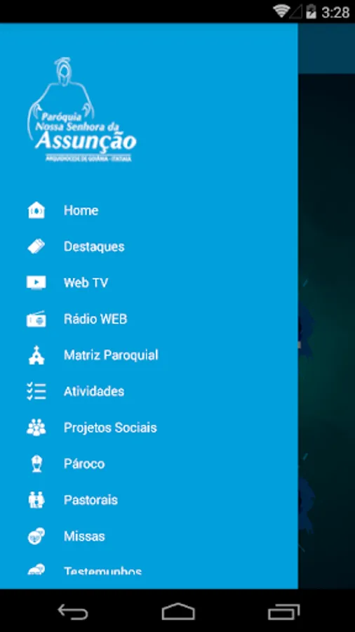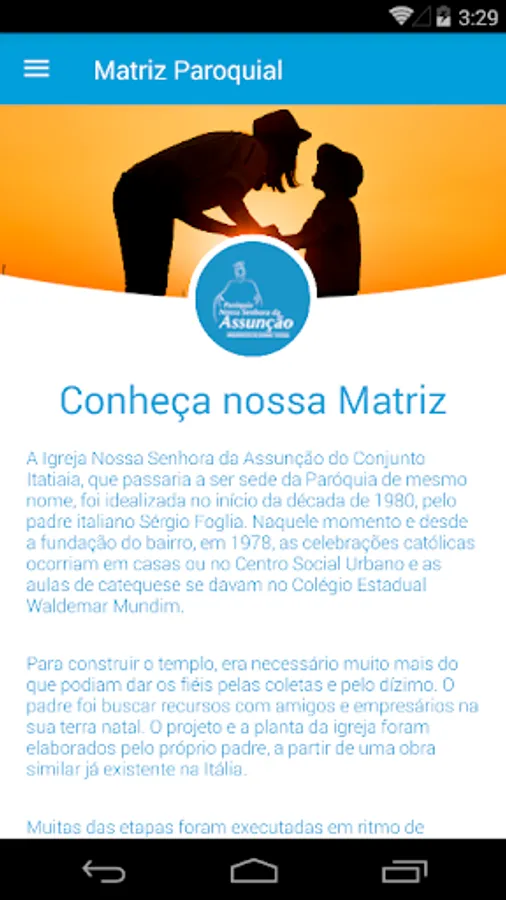 App of the Parish of Our Lady of the Assumption, containing links to web radio, web TV, calendar, applications, prayer, day of the message and highlights the church.