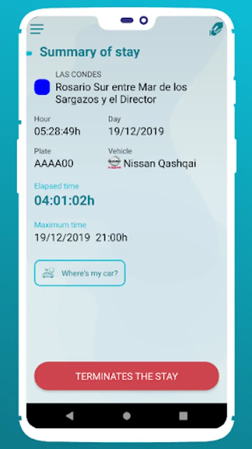 Save time and gain in comfort! The service is very simple: park your vehicle, open EstacionAPP and start your stay in the regulated surface parking area. The app itself will geolocate you on the street where you are and the rate that will be applied to your stay.