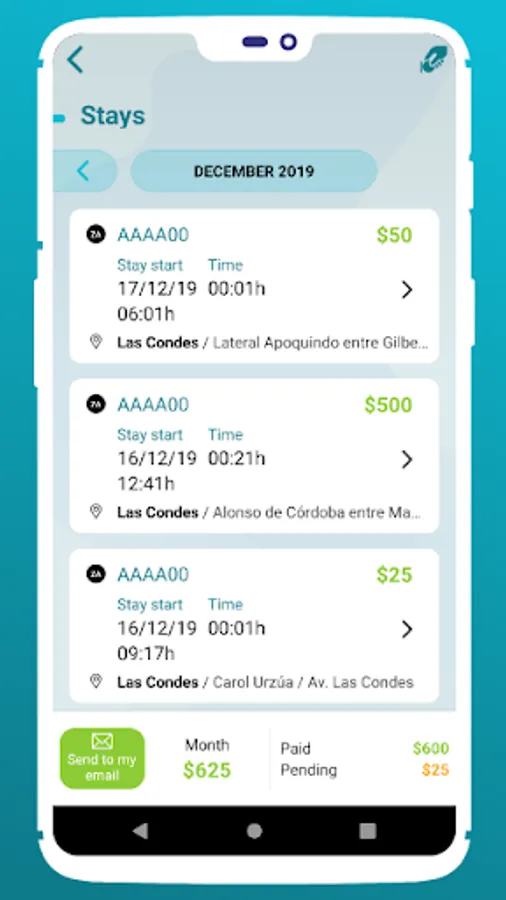 EstacionAPP is also a tool to check your monthly consumption, send your receipts to your e-mail account or locate your vehicle in case you don’t remember where you parked it.
