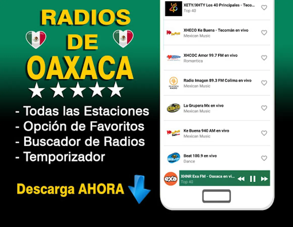 Radios de Oaxaca gives you a unique experience, with full functions where you can search in seconds by putting the name of your favorite Oaxaca Radio Station, customize your Radio Oaxaca Free App in your own way and many other functions that are super usual.