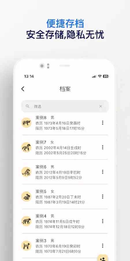 2. Fate chart archive: This application allows you to save the generated horoscope results. You can add tags to each chart for better organization and reference. This function is convenient for you to review and analyze the results of the arrangement, and further study the fate of yourself or others. The archives will be reliably stored in a safe place on the machine without revealing your personal privacy.