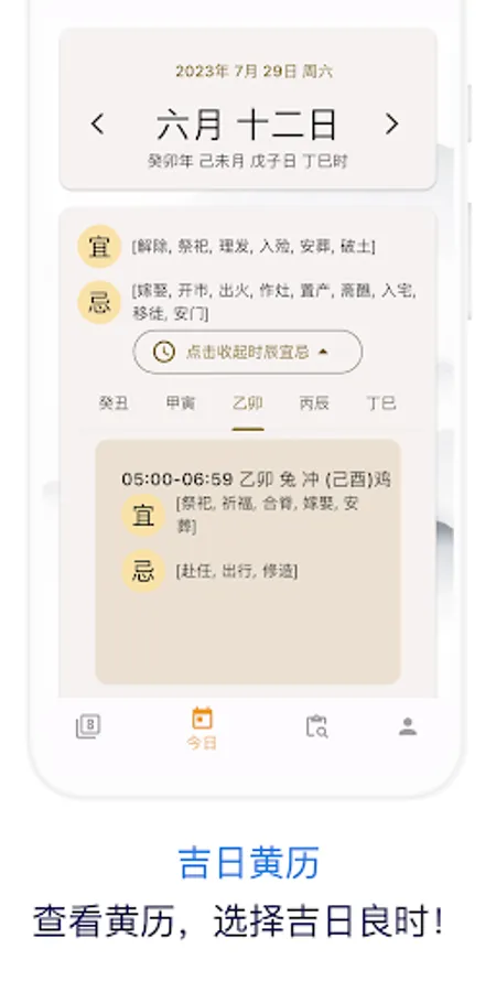 3. Check the lunar calendar information: "Xuantong Bazi" provides the functions of the lunar calendar. You can easily get lunar dates, solar terms, daily taboos and other important lunar information. Knowing the information about the lunar calendar can help you better understand traditional culture and make informed decisions in your daily life.