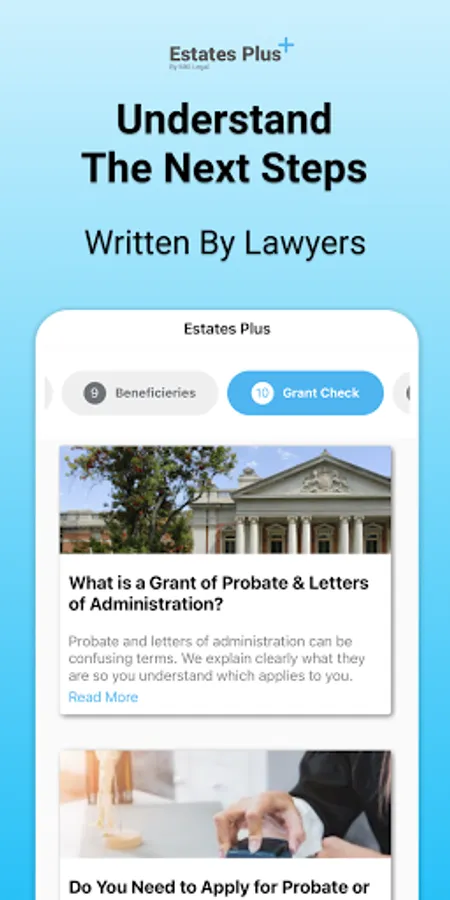 Reduce stress and save money. Our guide is written by expert estate lawyers in easy-to-understand plain English. Knowing what to do next helps reduce stress. The app is free, so you don't have to keep visiting expensive lawyers for answers.