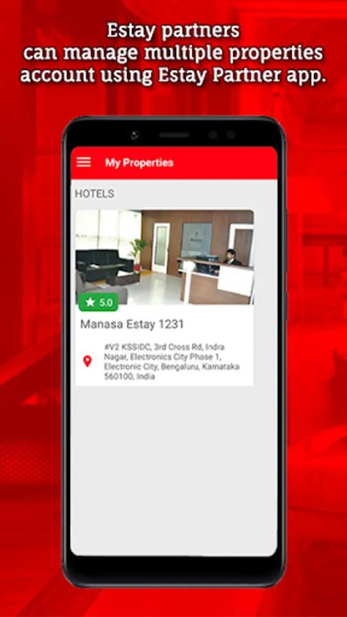 Estay partner mobile application is used by hotel or property owners who can manage the guest check in and check out , booking of rooms , accounts and other transaction . The application is made for smooth transaction and hassle free check in experience of guests as well as the property owners. The billings and other accounting with record keeping functionality is also there. This application is property of Estay and can be used by the partners.