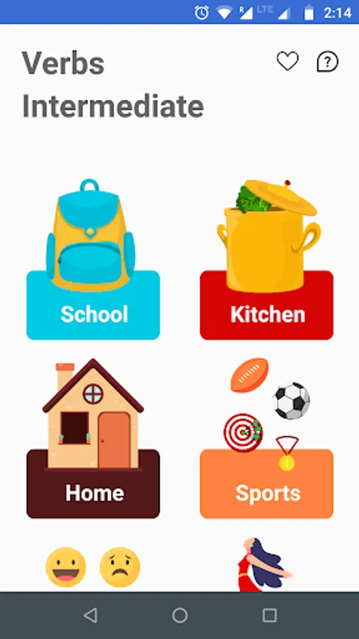 Learning Intermediate English Verbs is one of the best ways to sound more like native speaker. This application provides more than 120 Intermediate English Verbs, with graphical resources connecting to the meaning of each one, and visual exercises that allow you to learn them in a fun way.