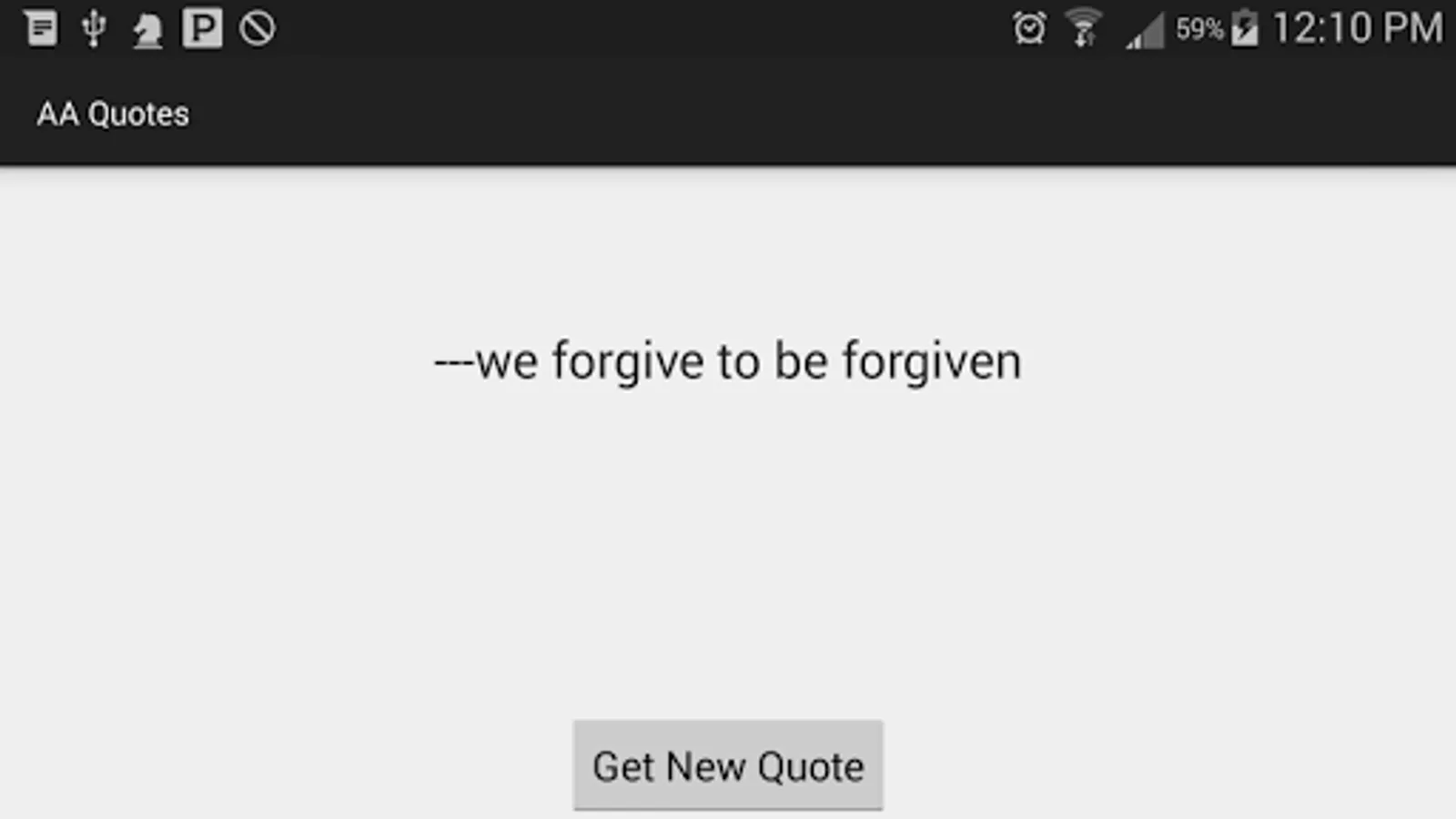This app is easy to use and simply displays a random saying or slogan straight from the rooms of Alcoholics Anonymous at the push of a button or a swipe.