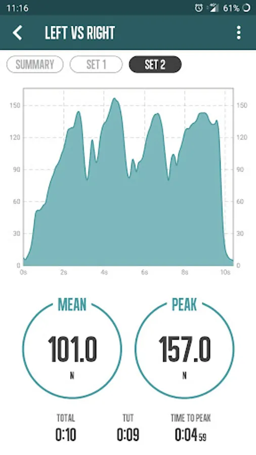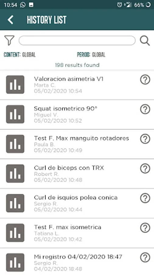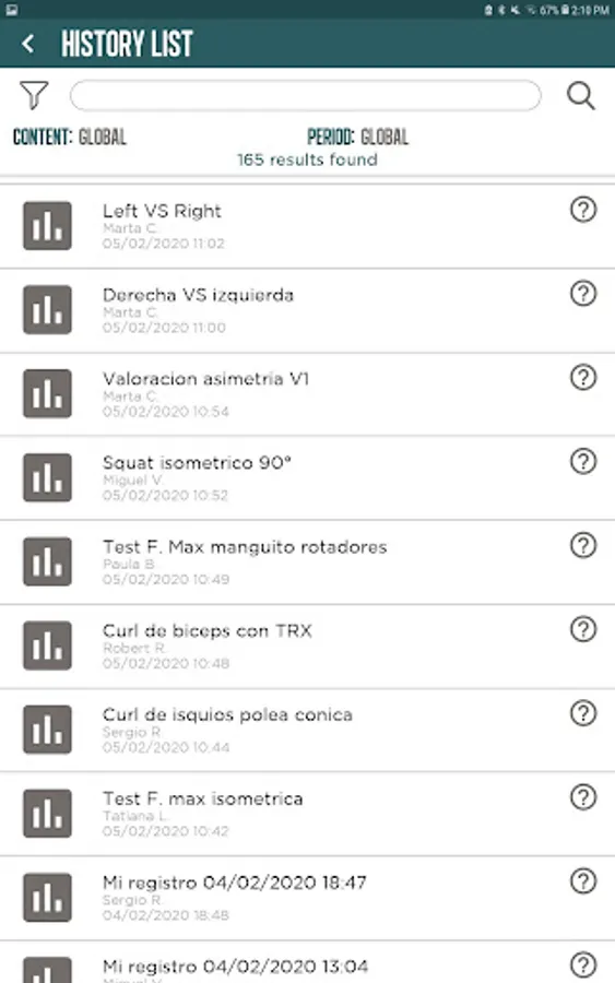 You can analyze the training sessions by observing variable graphs of strength and activity times, summaries of the training sessions carried out; You can make comparisons between sessions and series.