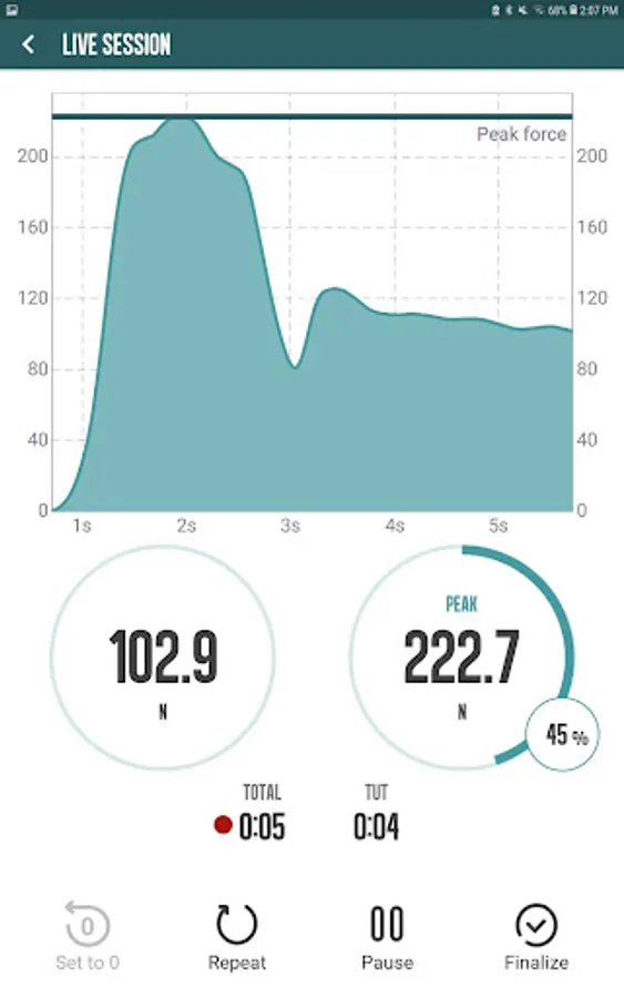 The exclusive SUIFF® PRO mobile App receives and processes the data sent by the SUIFF® PRO sensor and presents it to the user in real time. In this way, both the professional who works with her, and the client who performs the exercise, can observe the force that is being performed in each action at the same time of performing it.
